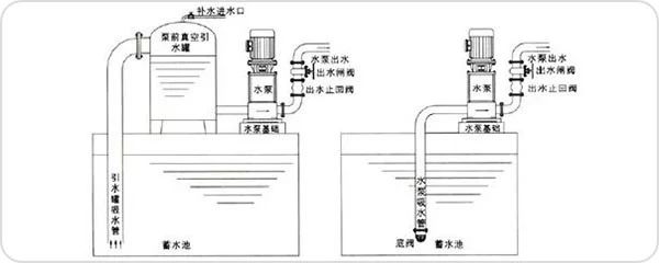 另一種是安裝在水泵的后方。這種安裝方法是液面高于水泵的情況下,方便啟停水泵時(shí)不用關(guān)水泵出水閥,特別是對于母管制水泵系統,防止發(fā)生倒流的情況。