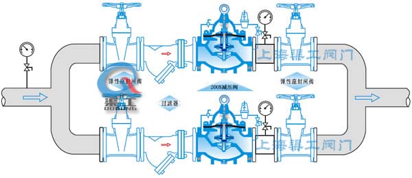 本公司的200X減壓穩壓閥由主閥、導閥、針閥、球閥、微型過(guò)濾器和壓力表組成水力控制接管系統。使用時(shí),當調定出口壓力后,能自動(dòng)保持穩定出口壓力。